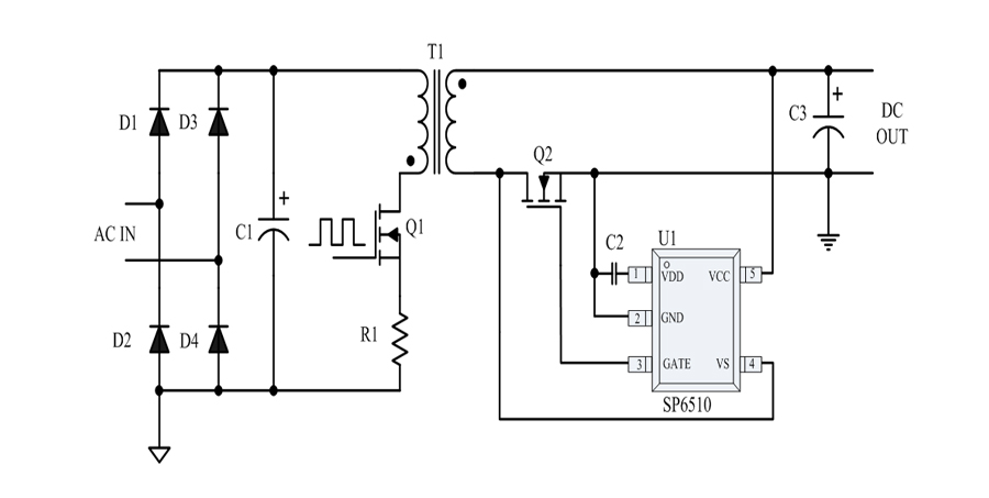 SP6510是一顆高性能的開關電源次級側同步整流控制電路。在低壓大電流開關電源應用中,輕松滿足6級能效,是理想的超低導通壓降整流器件的解決方案。芯片可支持高達150kHz的開關頻率應用,并且支持CCM / QR / DCM等開關電源工作模式應用,其極低導通壓降產生的損耗遠小于肖特基二極管的導通損耗,極大提高了系統的轉換效率,大幅降低了整流器件的溫度。高達1A的峰值電流驅動能力可確保快速開通和關斷外部的大電流MOSFET器件,獲得優異的轉換效能,輸出電壓鉗位功能使得高供電電壓下柵極仍然安全可靠。