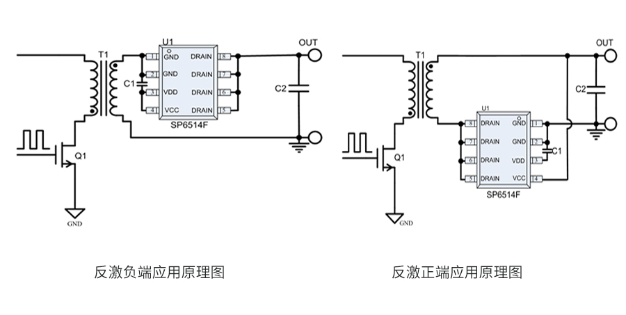 SP6514FA是一顆高性能的開(kāi)關(guān)電源次級(jí)側(cè)同步整流控制電路。在低壓大電流開(kāi)關(guān)電源應(yīng)用中,輕松滿足6級(jí)能效,是理想的超低導(dǎo)通壓降整流器件的解決方案。芯片可支持高達(dá)150KHz的開(kāi)關(guān)頻率應(yīng)用,并且支持CCM / QR / DCM等開(kāi)關(guān)電源工作模式應(yīng)用,其極低導(dǎo)通壓降產(chǎn)生的損耗遠(yuǎn)小于肖特基二極管的導(dǎo)通損耗,極大提高了系統(tǒng)的轉(zhuǎn)換效率,大幅降低了整流器件的溫度。