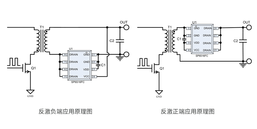 SP6516FC是一顆高性能的開關電源次級側同步整流控制電路。在低壓大電流開關電源應用中,輕松滿足6級能效,是理想的超低導通壓降整流器件的解決方案。芯片可支持高達150KHz的開關頻率應用,并且支持CCM / QR / DCM等開關電源工作模式應用,其極低導通壓降產生的損耗遠小于肖特基二極管的導通損耗,極大提高了系統的轉換效率,大幅降低了整流器件的溫度。